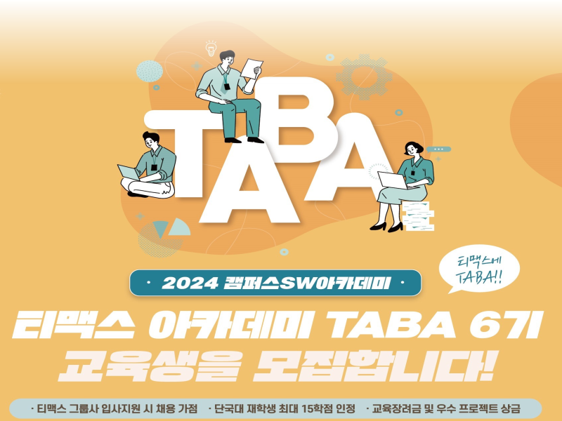 | [2024 대학·기업 협력형 SW아카데미] TABA 6기 교육생을 모집(마감) | 최고관리자 / 2025.10.29 | |