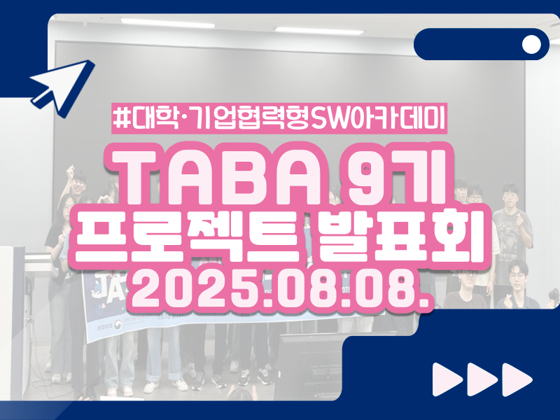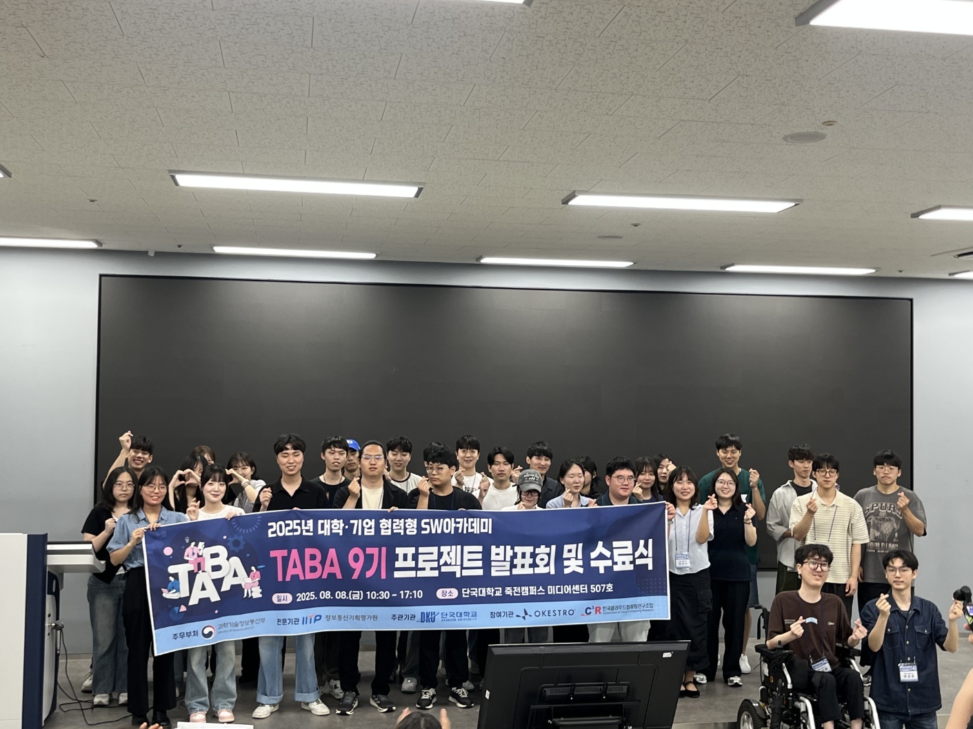 지난 8월 8일 금요일, 단국대학교 미디어 센터 507호에서 2025년 대학·기업 협력형 SW아카데미 TABA 9기 교육생의 프로젝트 발표회 및 수료식이 진행되었습니다.