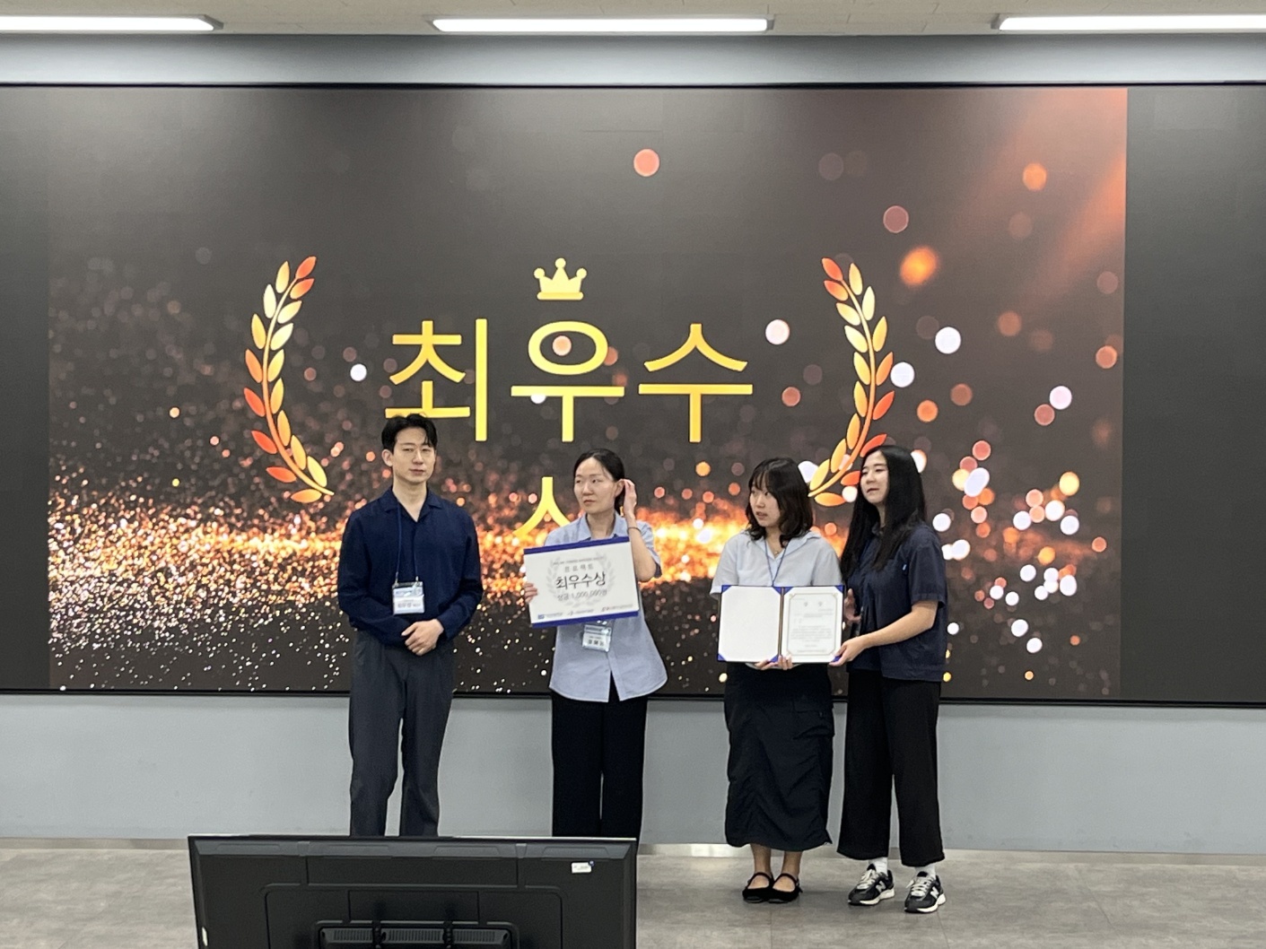 모든 프로젝트 팀의 발표가 종료된 후에는 시상식이 이루어졌습니다. 최우수상 시상은 단국대학교 박소현 교수님께서 강의하시는 캡스톤 디자인 과목 수강생들이 시상을 하게 되었습니다.