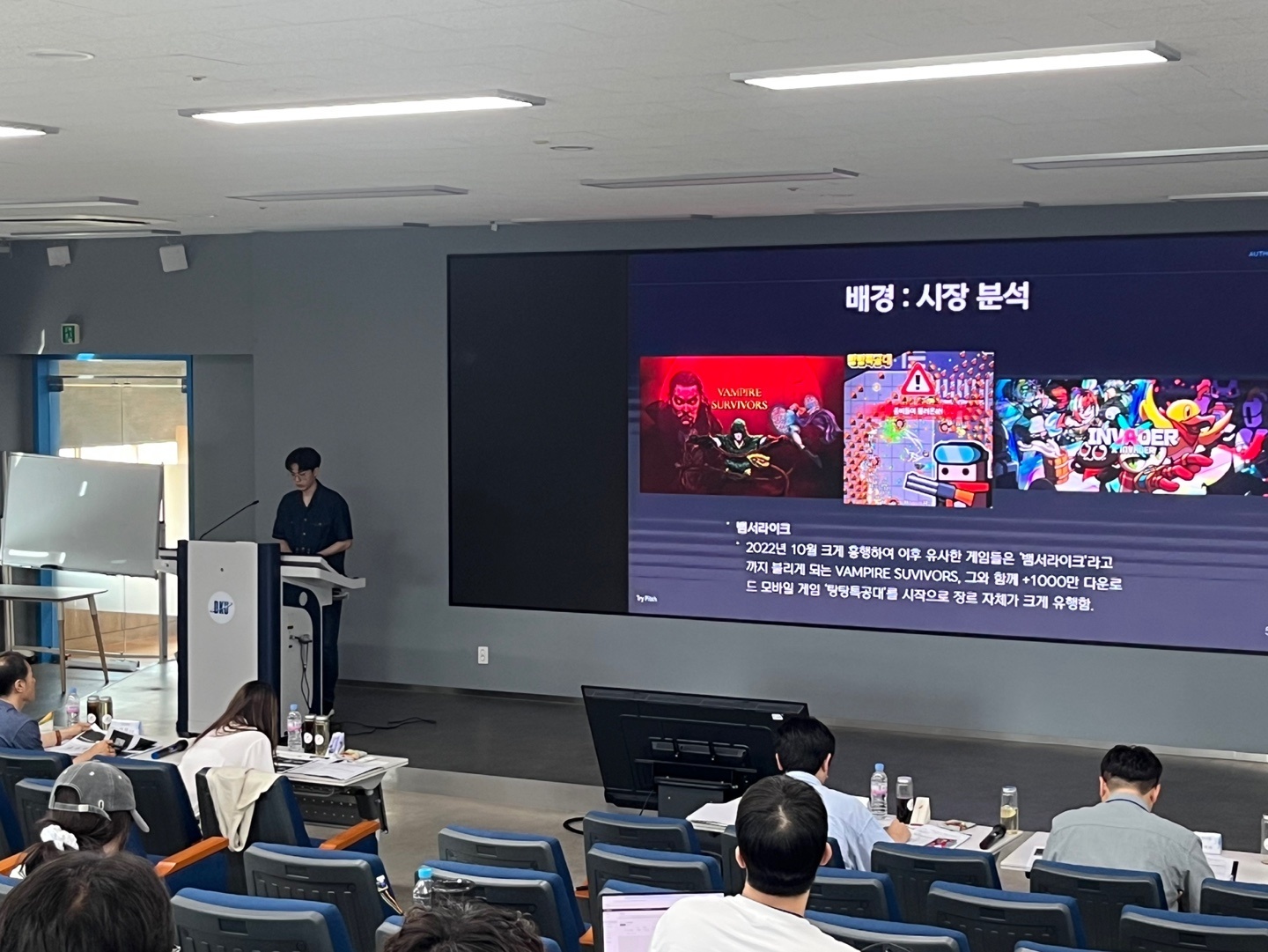 그 중, 재즈데빌팀에서 게임 개발에 관한 내용을 발표하였는데, 그동안 TABA 발표회에선 보지 못했던 주제라 심사위원들 뿐만 아니라 교육생들도 많은 관심을 가졌습니다.