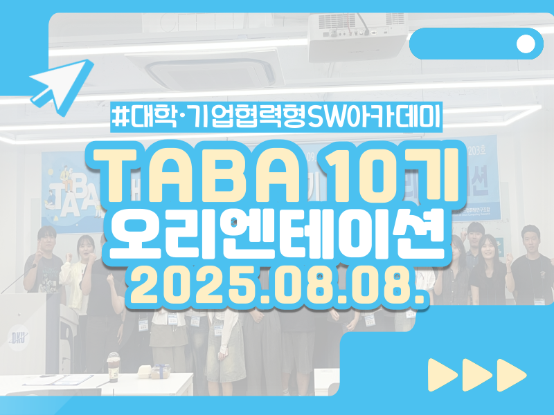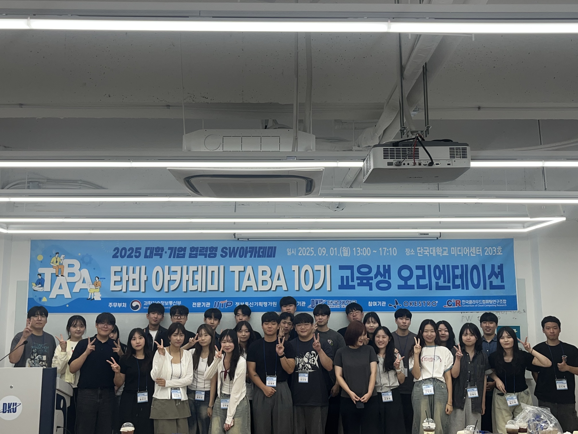 지난 9월 1일 월요일, 단국대학교 미디어센터 203호에서 2025년 대학·기업 협력형 SW아카데미 TABA 10기 교육생의 오리엔테이션이 진행되었습니다.